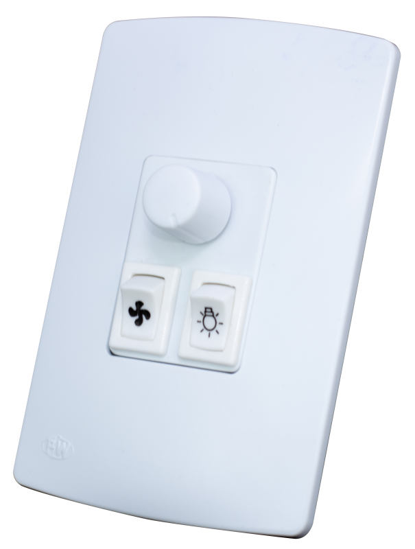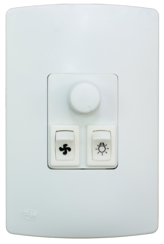 Possui um variador rotativo para velocidade e interruptor para a luz do ventilador; Botão para ligar o ventilador e redirecionar o fluxo de ventilação. Lâmpadas até 200W/127V ou 300W/220V Motor até 1/4 HP ou 200W/127V ou 300W/220V. Aplicação: - Ventiladores residênciais e comerciais.