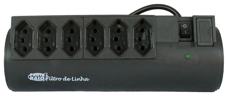 O Filtro de Linha foi desenvolvido para evitar que seus aparelhos eletro-eletrônicos sejam danificados por surtos transitórios elétricos (efeitos de raios, picos de voltagem e distúrbios elétricos) e filtragem EMI/RFI (Interferência eletromagnética e radio frequência). O Filtro de Linha protege os equipamentos instalados em locais onde a exposição de surtos é moderada e baixa. O Prote Raio Filtro de Linha Tripolar possui rabicho com plug de 2P + T (fase, neutro ou fase, terra) utilizando o terra para drenar o surto, tendo 6 tomadas universais de saída. (Mod.:254)