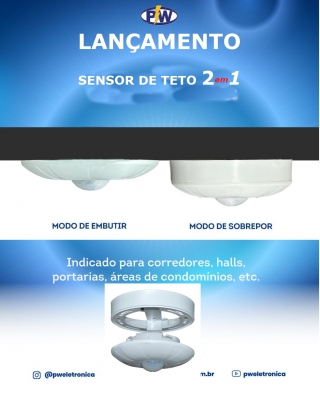 SENSOR DE PRESENÇA TETO SOBREPOR E EMBUTIR C/ FOTOCELULA